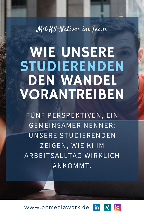 Sie sind nicht bloß Werkstudierende, die Aufgaben abarbeiten – sie sind KI-Natives. Das bedeutet: Sie bringen eine technologische Neugier und Selbstverständlichkeit mit, die für viele Organisationen der entscheidende Hebel ist. Sie probieren gern Tools aus, lernen schnell, geben Impulse und bringen Begeisterung, aber auch kritische Reflexion mit.